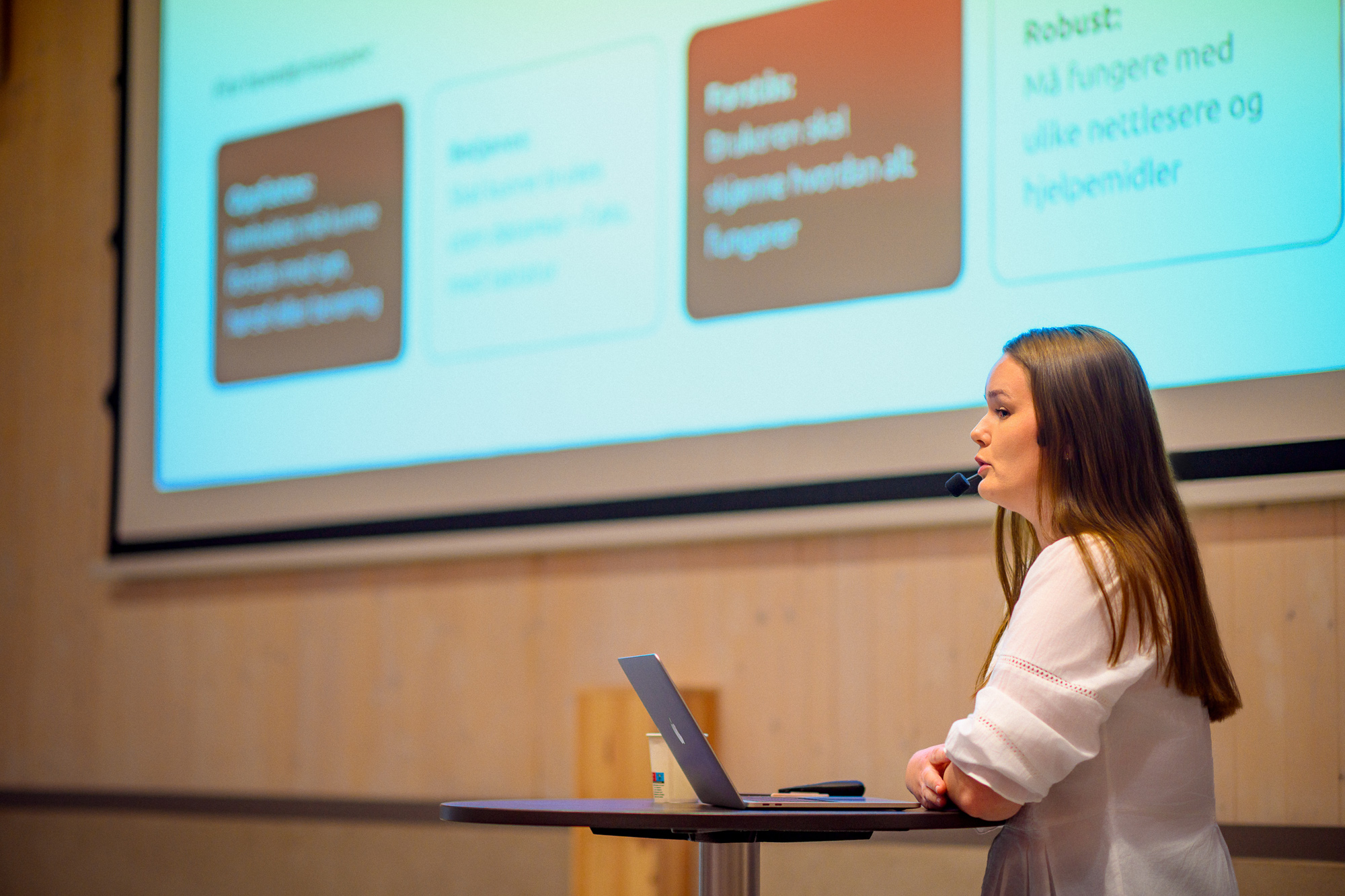 Vi hadde også med en fotograf som fanget stemningen gjennom dagen. Av hensyn til personvern valgte vi å fokusere på bilder av foredragsholderne og selve gjennomføringen.